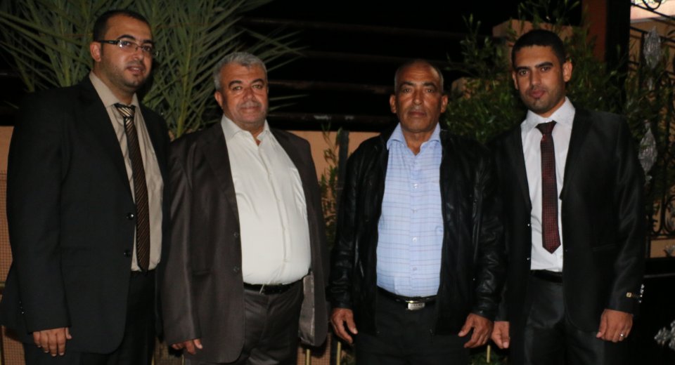 أ. عبدالمنعم رشاد الأسطل(زوج شقيقة العروس)، أ. إياد سليم، أ. محمد كمال (زوج شقيقة العروس)، أ. أحمد (شقيق العروس)