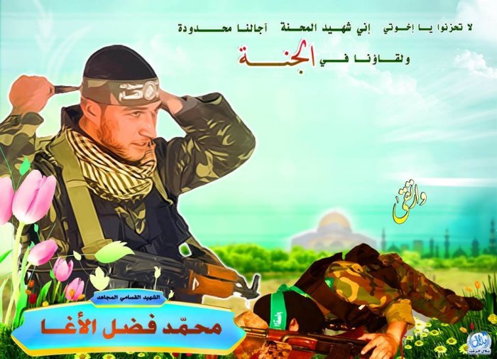 مضَيتَ بُنِيَّ عَلَى دَربِ الجِهَادِ مَسرُورَا .. مَضَيتَ عَلَى دَربِ الجِهَادِ مَأجُورَاُ .. سَيُنْجْزُ مُبتَغَاكَ بِقَصدِكَ .. وَ لّن يُضَيعَكَ الله ..