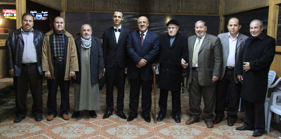 أ. ربيع ياسين الأسطل، د. نظام الأسطل، أ. غانم الأسطل، الحاج أبو نائل شهوان، والد العريس، العريس،