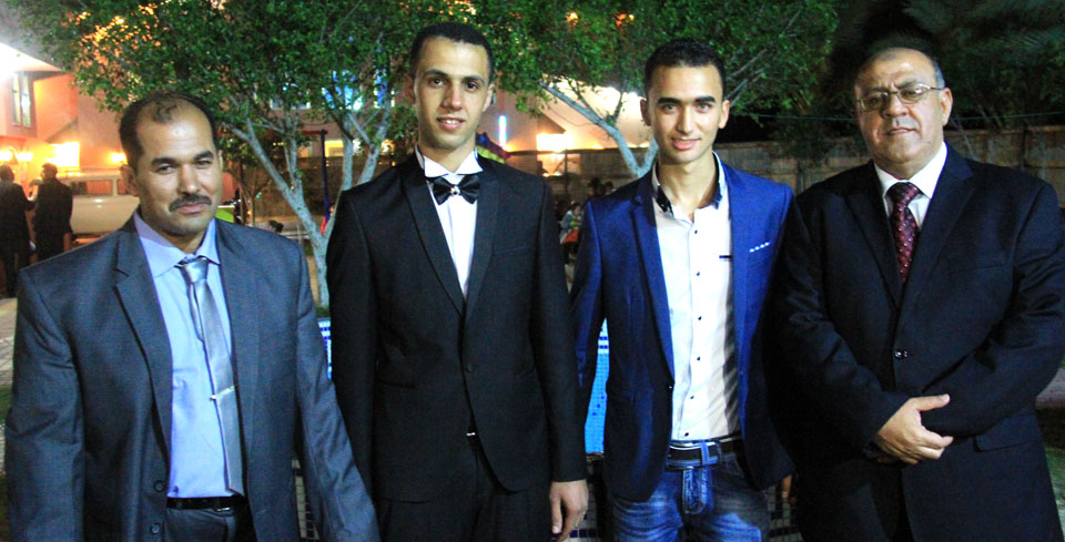 أ. محمد غانم الأسطل ونجله، والد العريس، العريس، محمد حسني الأسطل وشقيقه أحمد