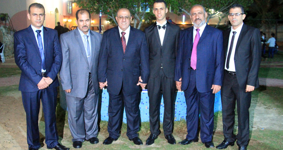 د. غسان(عم العريس)، محامي حسني الأسطل، العريس، والد العريس، والد العروس