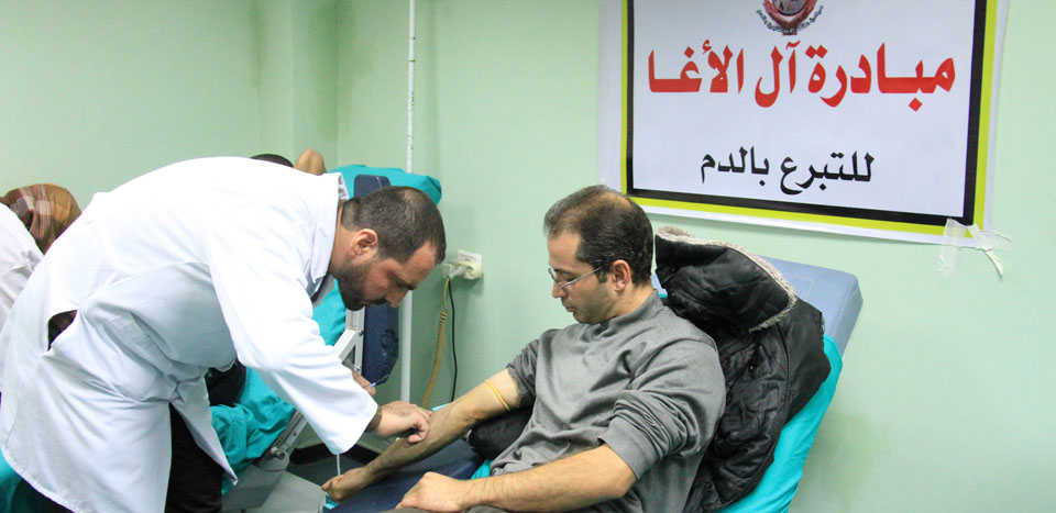 مجمع مستشفى ناصر الطبي- خان يونس- الأحد الموافق 30-11-2014م- نظراً للحاجة الماسة للمرضى والحالات الخاصة، منها غسيل الكلى والثلاسيميا، بادرت عائلة الأغا بحملة للتبرع بالدم لتغطية حاجات المستشفيات من وحدات الدم، مساهمة منها في إيجاد حل مناسب لتغطية هذه الاحتياجات، وعلى الأخص في الظروف الطارئة.