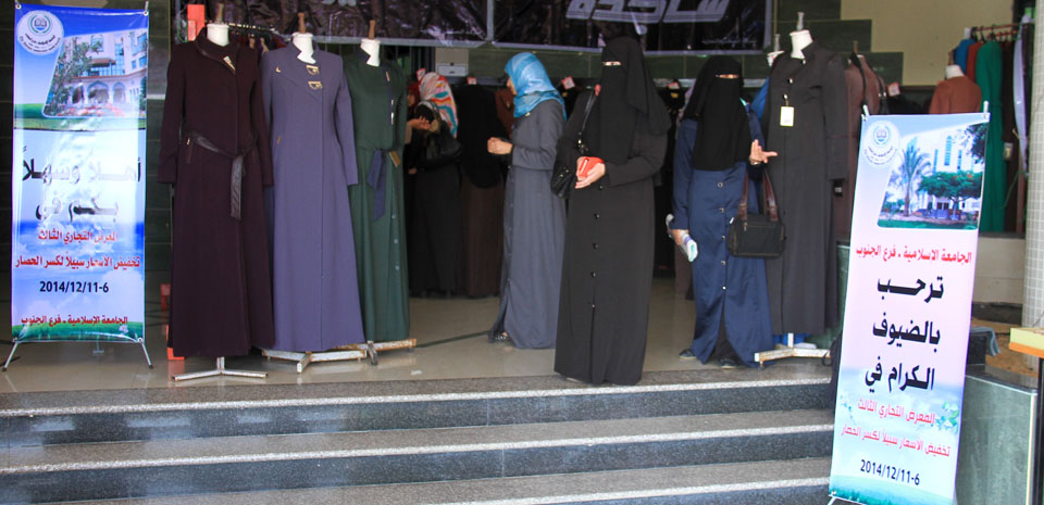 أقيم علي أرض الجامعة الاسلامية فرع الجنوب صباح السبت، معرض التسوق التجاري الثالث، بعنوان" تخفيض الأسعار من أجل كسر الحصار".