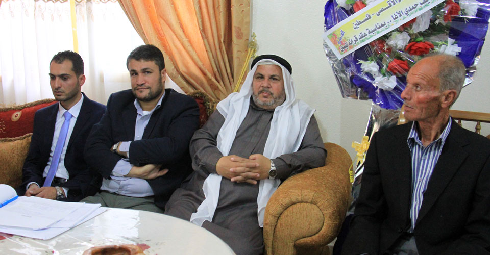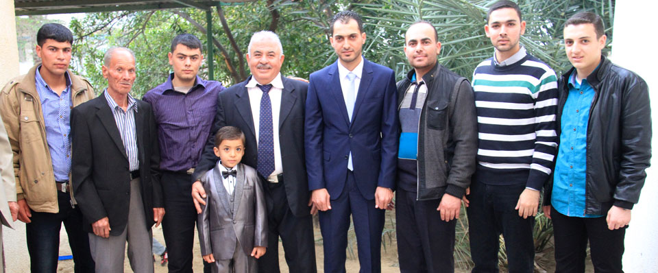 أ. نمر سعيد الأغا(زوج خالة العروس)، والد العريس، الشيخ محمد عبدالمعطي الأغا، المأذون همام زكي الأغا، العريس،