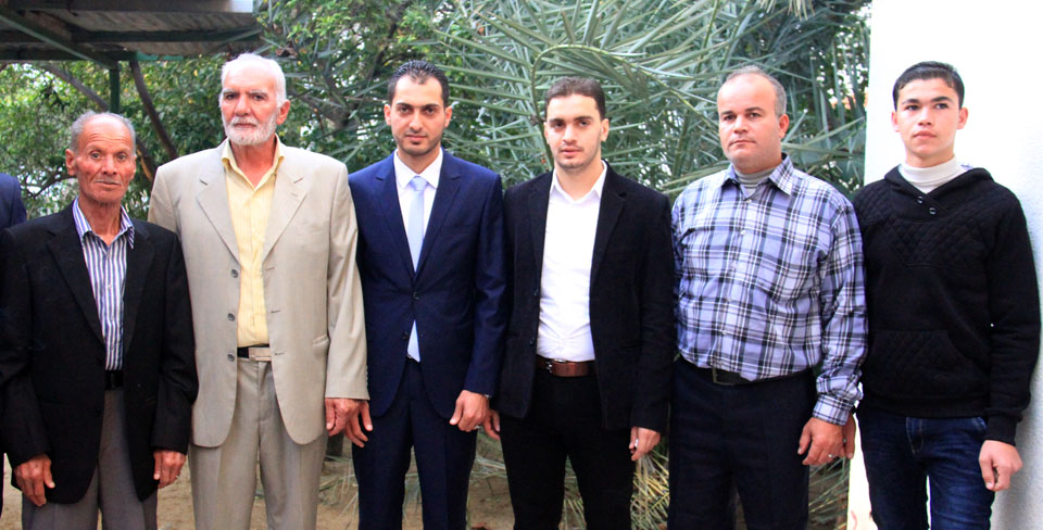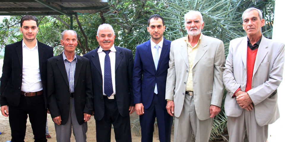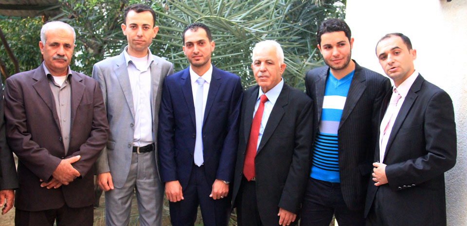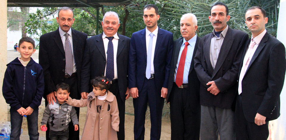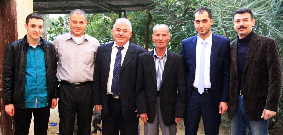 م. سفيان محمد الاغا، الحاج محمد صالح الاغا، والد العروس ونجله حلمي، أ. كرم احمد الاغا، أ. أسامة نظام الاغا