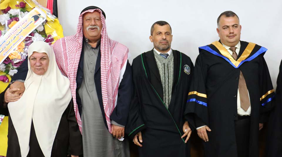 الباحث، أ. د. رياض شاهين، والد الباحث، والدة الباحث الحاجة سعاد أحمد سليمان الأسطل