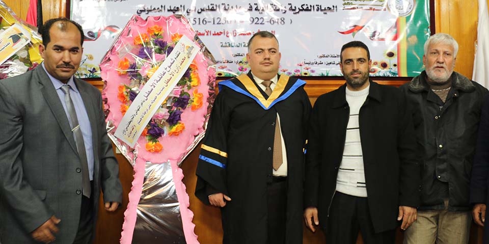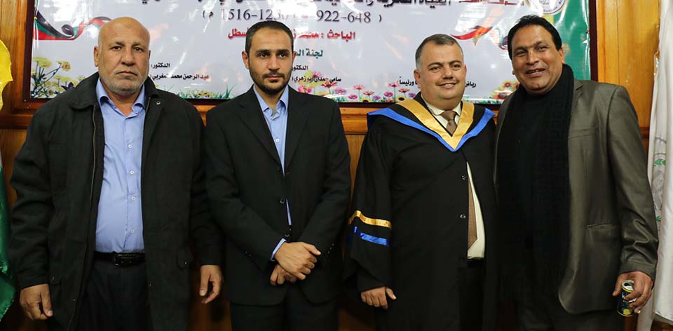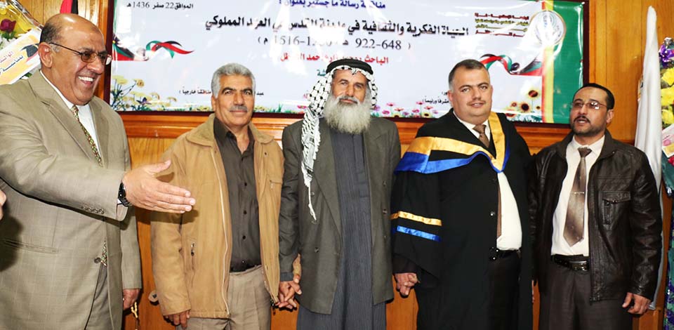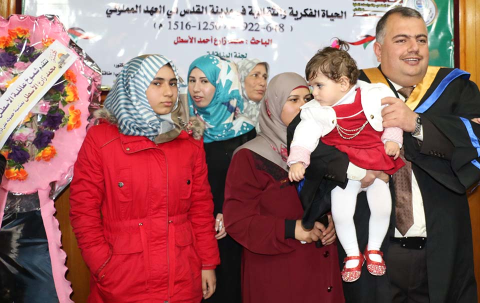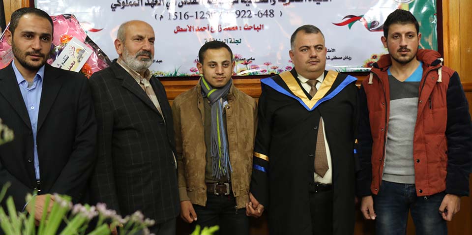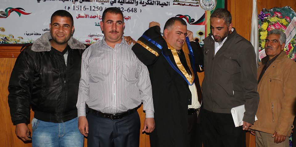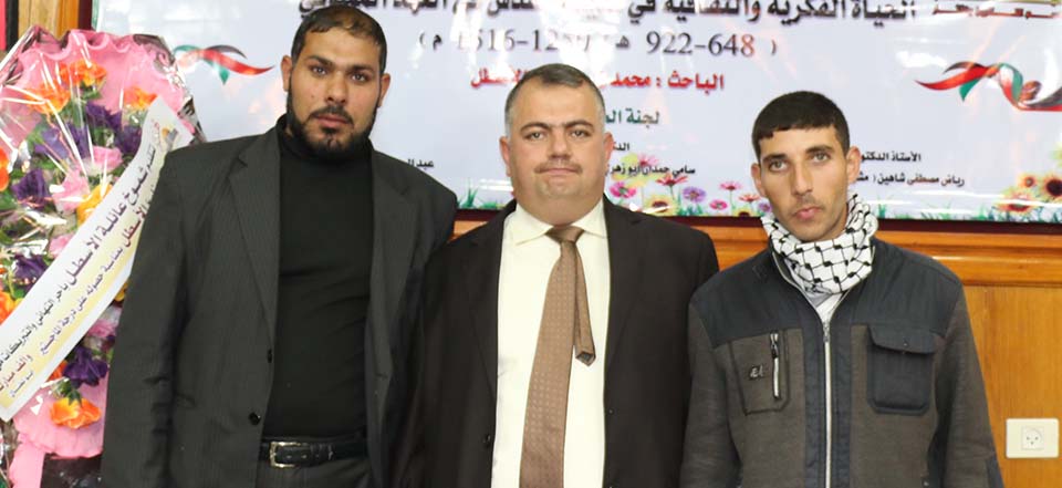 غزة- الجامعة الإسلامية- البحث العلمي والدراسات العليا- الأحد الموافق 14/12/2014- حصول الباحث محمد زارع أحمد عبدالنبي مصطفى أحمد يوسف كتخذه الأسطل على درجة الماجستير، في كلية الآداب- قسم التاريخ والآثار، بعنوان: