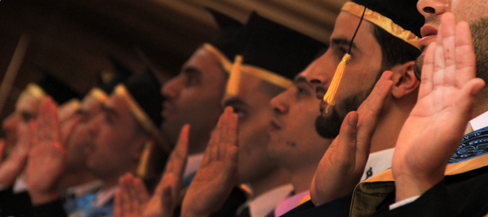 وفي ختام الحفل ردد الخريجون قسم الطبيب من وراء الدكتور حازم العجرمي مساعد عميد الكلية، ثم تلا ذلك تكريم للخريجين وتقديم شهادات الشكر والتقدير لهم بمناسبة التخرج.