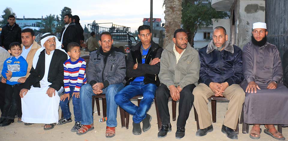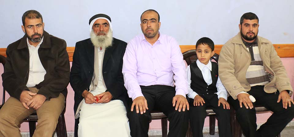 أ. محمد عودة الأغا (عم العروس)، الحاج عبدالرحيم الأغا (والد العروس)، االحاج فالوجي الأغا (عم العروس)، أخوة العروس أ. معاذ ، أ. محمد، السيد روبين