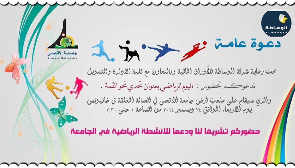 خان يونس- جامعة الأقصى- نظمت كلية الادارة والتمويل بالتعاون مع شركة الوساطة للاوراق المالية نشاط رياضي بعنوان تحدي نحو القمة ..