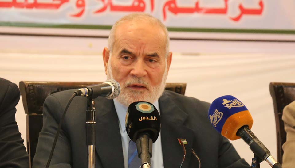 ثم انتقل برنامج اللقاء للسماع من رئيس المجلس التشريعي بالإنابة د.أحمد بحر، الذي أكد على أهمية توحيد جهد الجميع في سبيل نيل الحقوق المشروعة، كما أشار إلى اعتبار المصالحة الفلسطينية هدفاً استيراتيجياً من النواحي الدينية والوطنية والشعبية.
