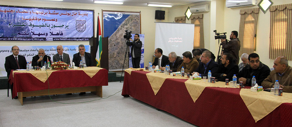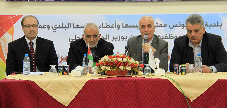 م. محمد شاكر ابو شعبان(صندوق تطوير إقراض البلديات)، د. نايف أبو خلف(وزير الحكم المحلي)، م. محمد الأغا(مدير عام بلدية خان يونس)