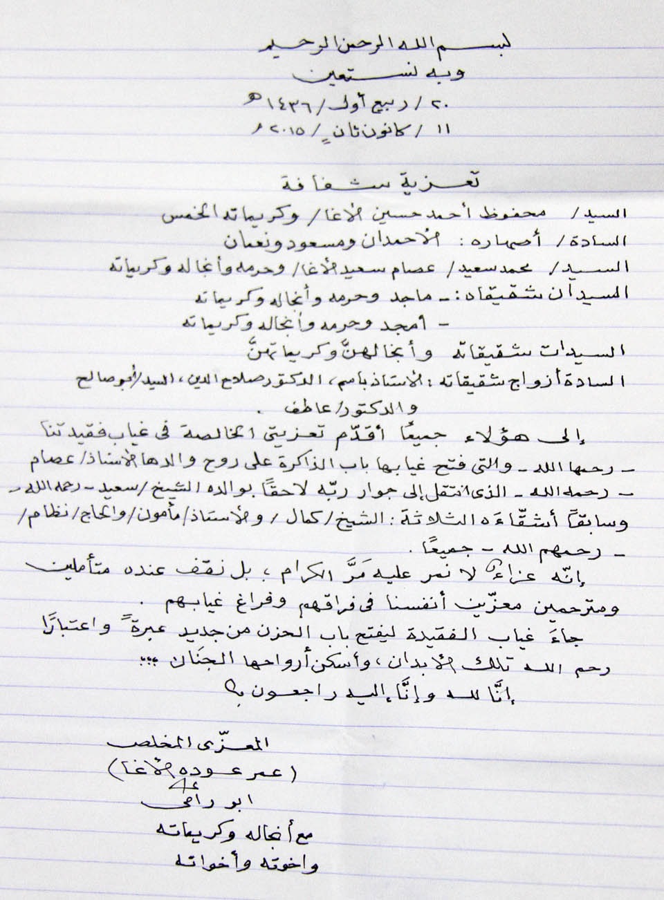الرئيسة/في ذمة الله/تعزية شفافة - بقلم أ. عمر عودة الأغا في ذمة الله تعزية شفافة - بقلم أ. عمر عودة الأغا تاريخ النشر : الثلاثاء | 13-01-2015 | 10:06 5071 تعزية ومواساة بقلم أ. عمر عودة اضغط هنا للتعرف على المرحومة أ. فاطمة عصام سعيد حمدان الأغا يمكنك تلقي أحدث الأخبار أول بأول بانضمامك لإحدى مجموعات الواتساب الخاصة بالعائلة من خلال الضغط هنـا اظهر المزيد