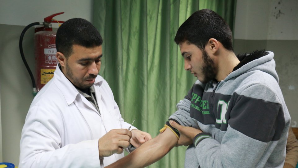 متابعة من قبل الدكتور زكريا الأسطل أبو يحيى(مدير مختبر الدم)، علي يوسف الأغا