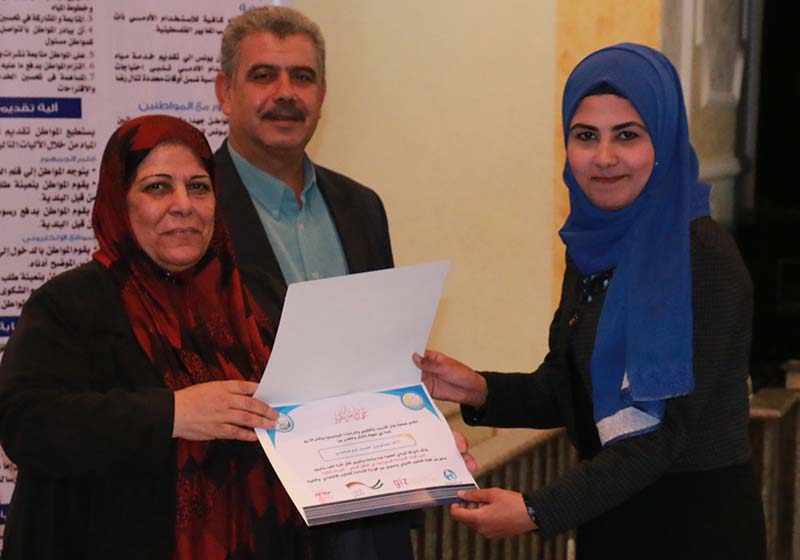 وفي نهاية الحفل الذي تخلله عرض دبكة شعبية وفلكلور فلسطيني وقصيدة شعرية تم تسليم شهادات الشكر والتقدير لكل المشاركين في المشروع من البلديات الثلاث ولجان المتابعة لكل منها.