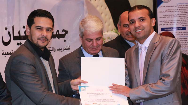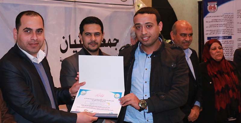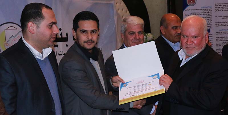 تكريم الإعلامي أ. حسام أبو خاطر، م. محمد زكريا الأغا، د. مؤمن أبو ندى ممثل هيئة التعاون الألماني GIZ