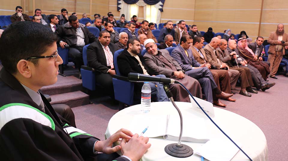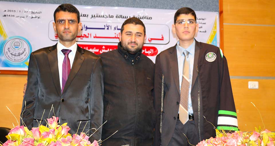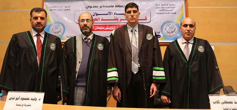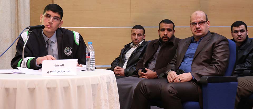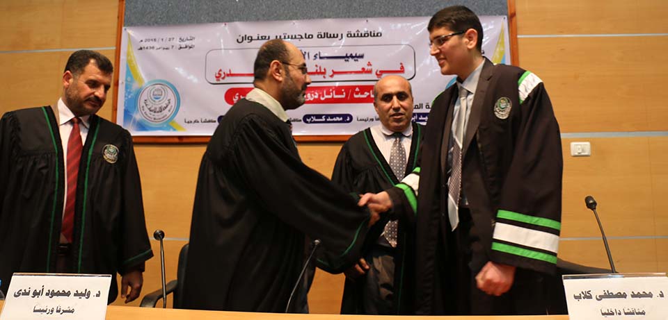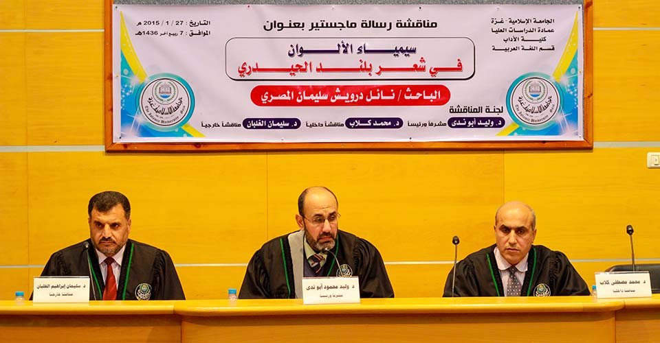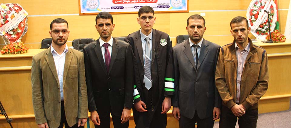 د. محمد مصطفى كلاب- مناقشاً داخلياً، د. وليد محمود أبو ندى- مشرفاً ورئيساً، د. سليمان الغلبان- مناقشاً خارجياً