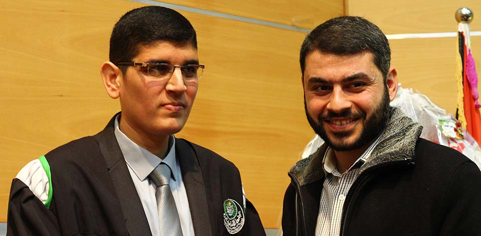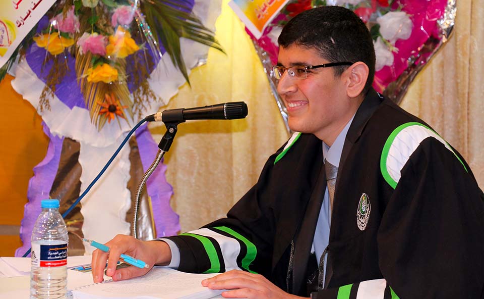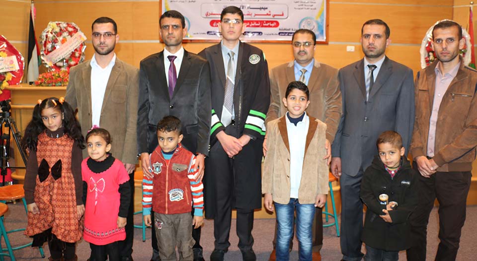 الباحث يتوسط لجنة الإشراف والمناقشة