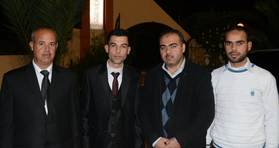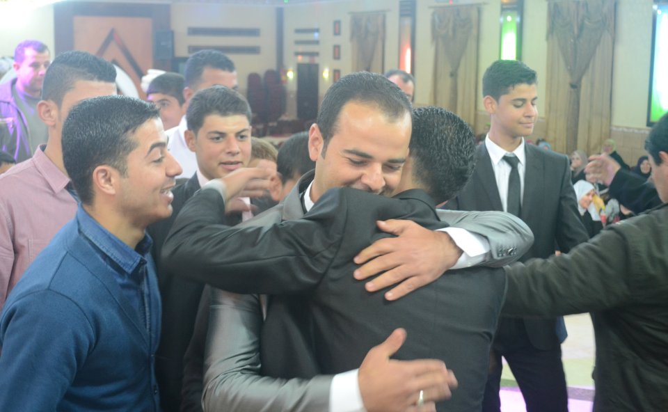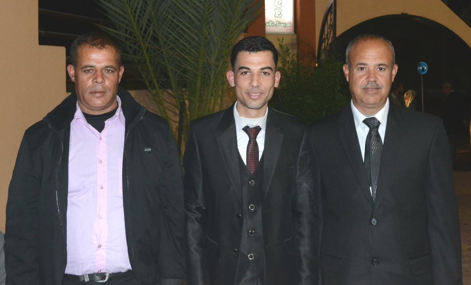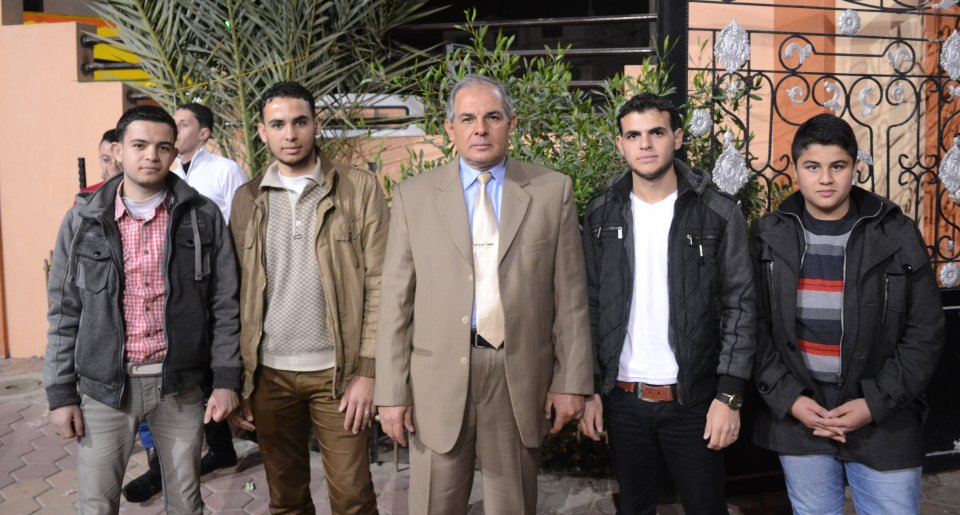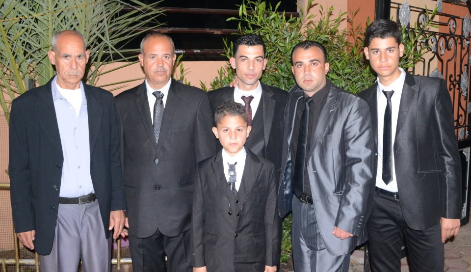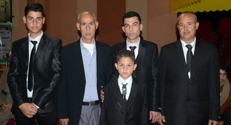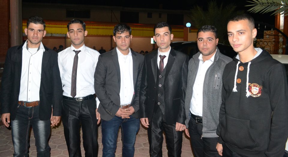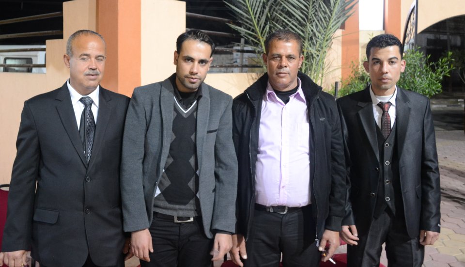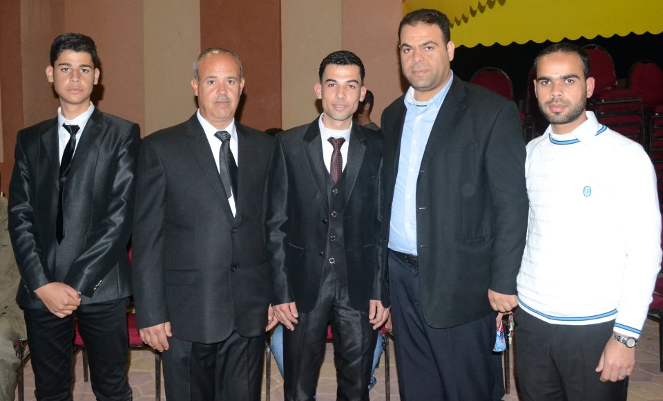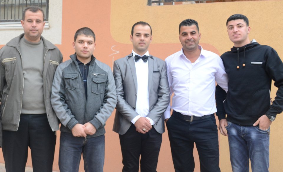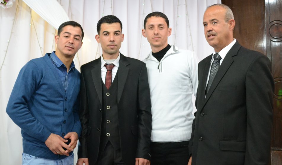 أ. محمد عبدالكريم كامل الاغا وشقيقه أ. رامي (أبناء عم العريس)، العريس، والد العريس