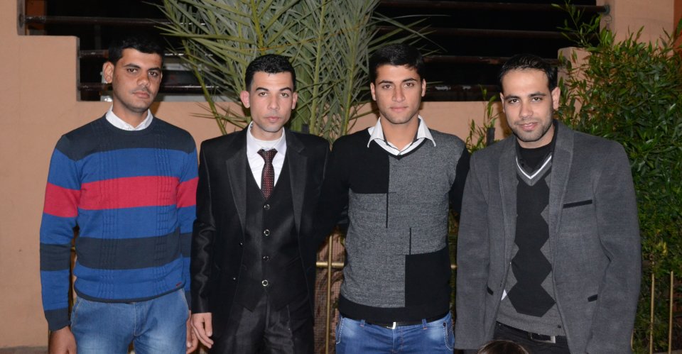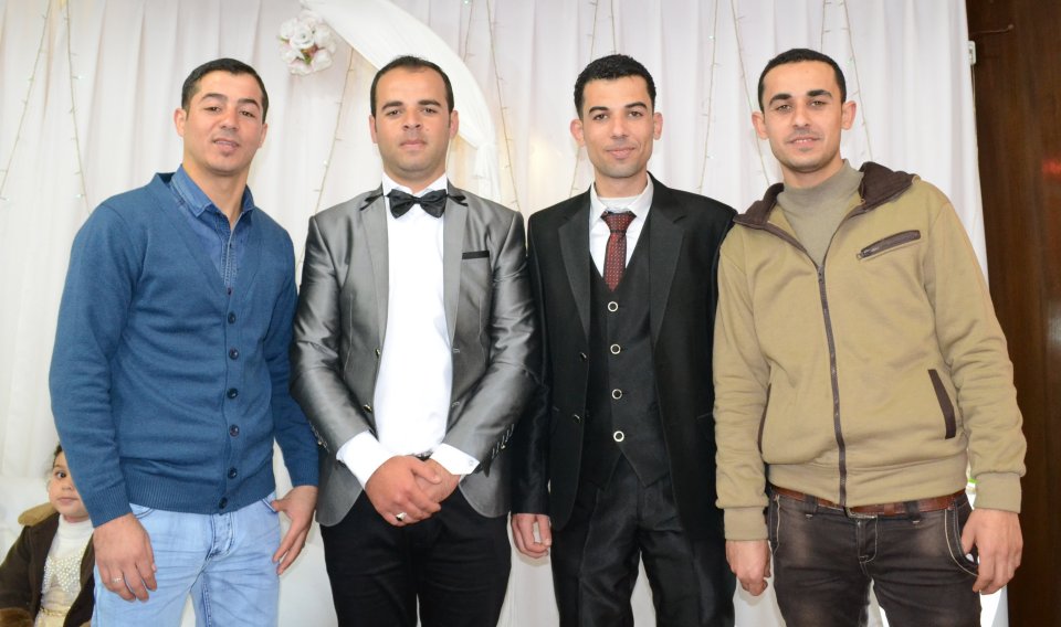 صهيب محمد الأغا، العريس، محمد (شقيق العروس)، علاء عمر الأغا، أحمد الأغا