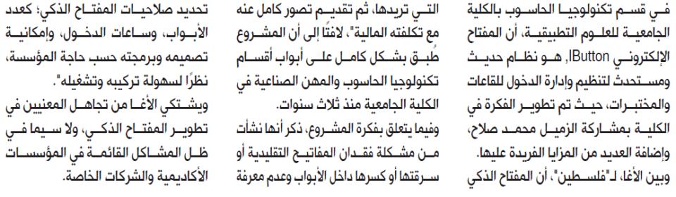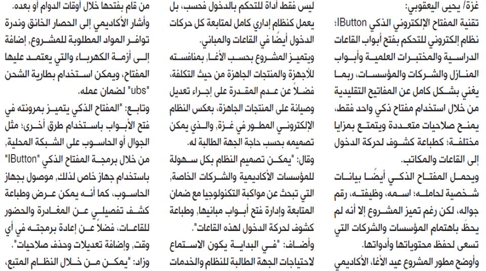 نظام متكامل لإدارة الدخول للقاعات والغرف يمتاز بسهولة التركيب والتشغيل وإمكانية التصميم حسب حاجة المؤسسة برمجته بكل سهوله ويسر من خلال جهاز الحاسوب، حيث يتم برمجه المفتاح الذكي iButton و توزيعه على كل مستخدم واعطائه الصلاحيات اللازمة (مثل الغرف المسموح بالدخول اليها الفترة الزمنية المتاحة للدخول و التاريخ) بالإضافة إلى إمكانية عرض وطباعه كشف تفصيلي كما و يمكن اعاده برمجه المفتاح في اي وقت و اضافة , تعديل وحذف الصلاحيات