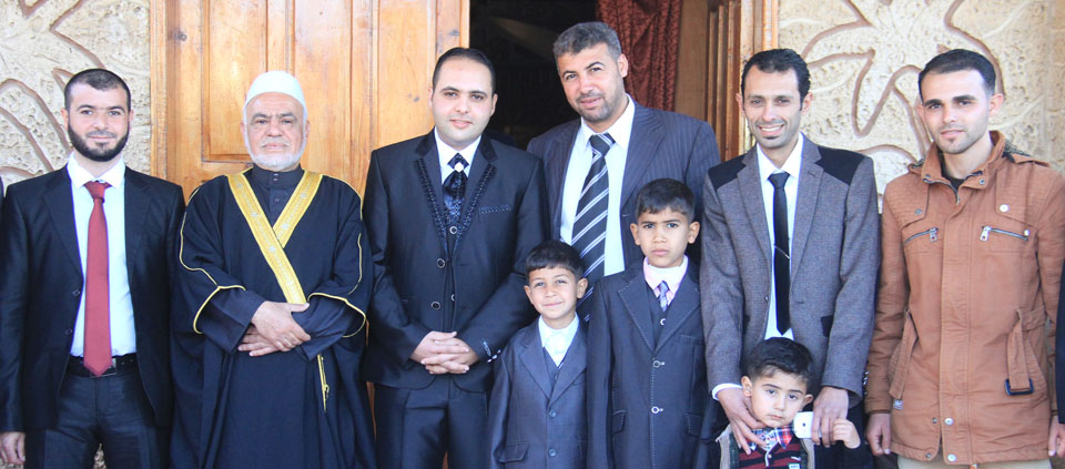 أ. نايف(شقيق العروس)، والد العريس، العريس، أ. رمضان شبير، الشيخ تميم شبير، أ بهاء رمضان الأغا(خال العروس)