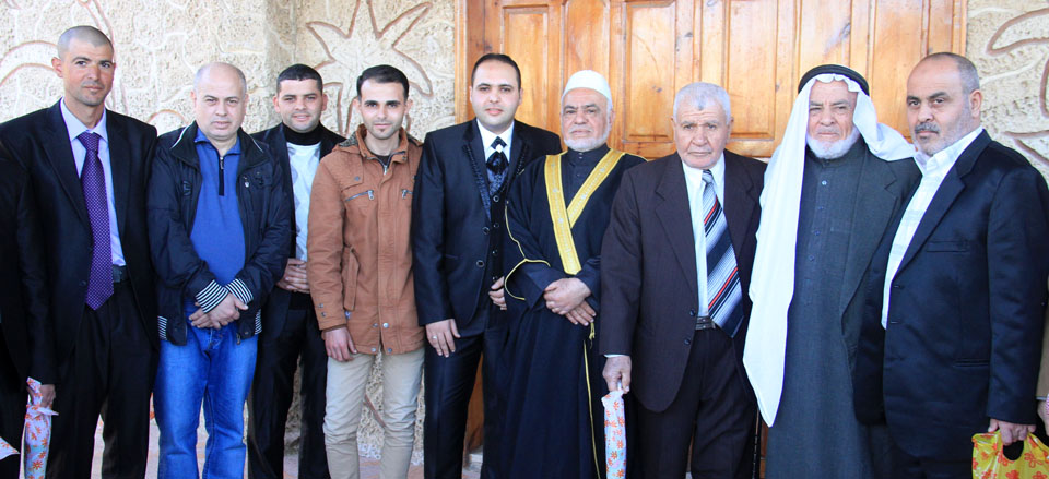 أ. صلاح شبير ووالده ا. رمضان، والد العريس، العريس، أ. ماهر شبير ، عم العريس، أ. نايف(شقيق العروس)