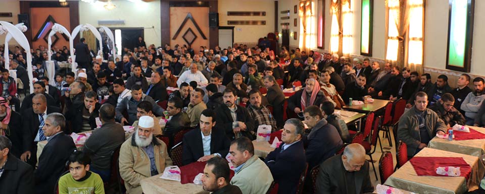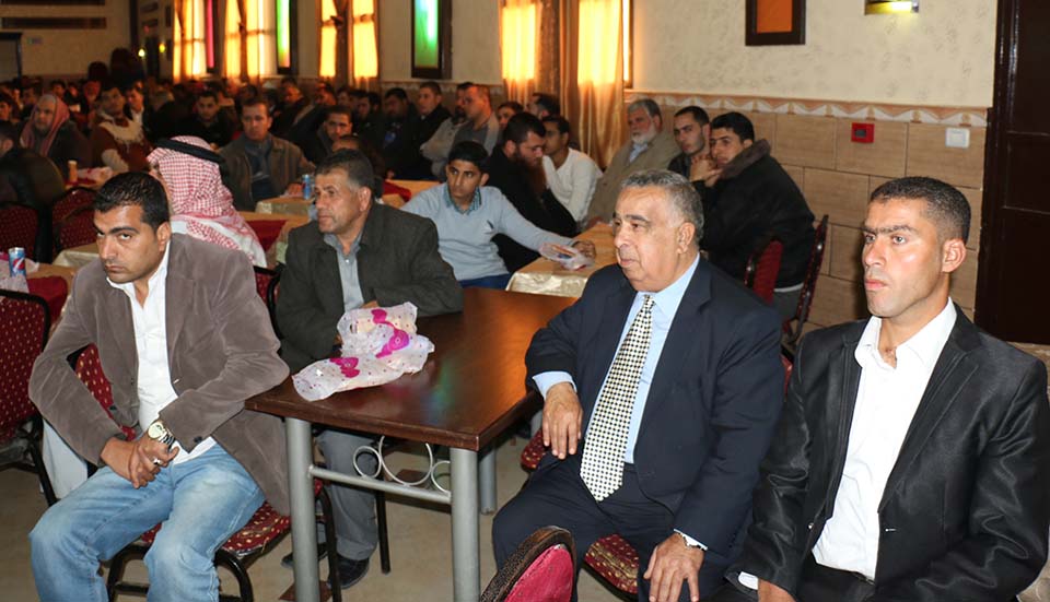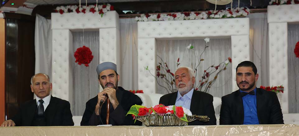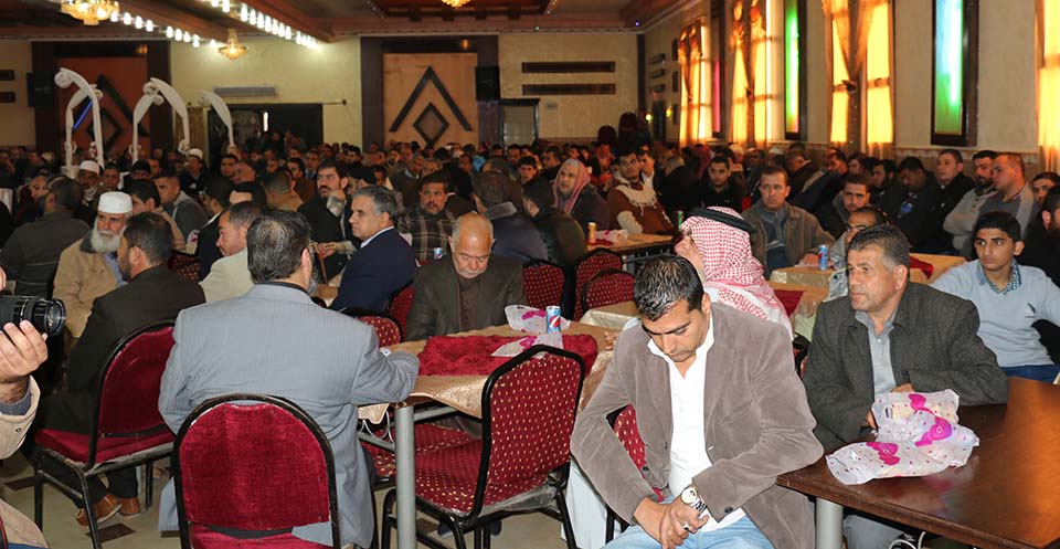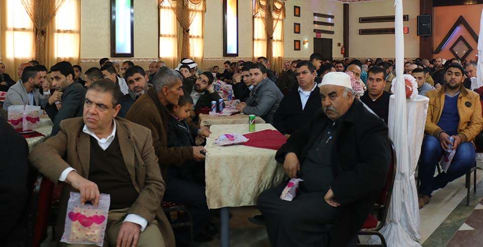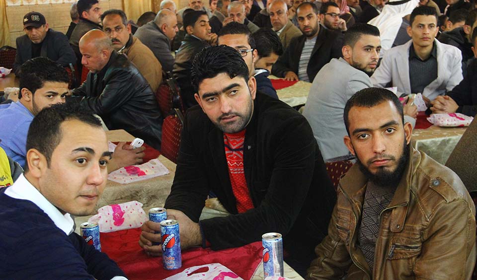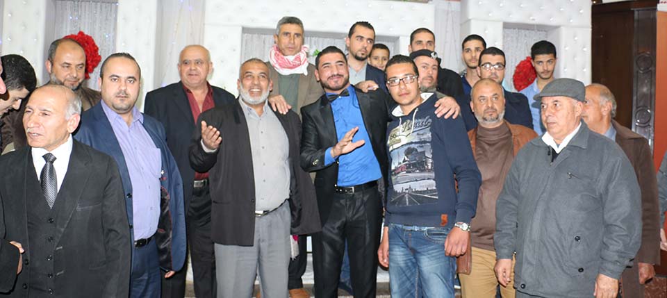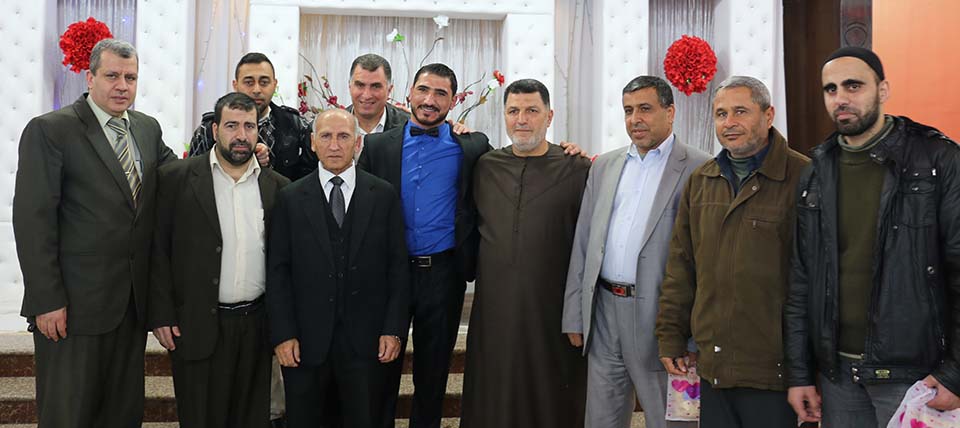 السيد محمد مصباح سويدان (زوج شقيقة العريس) والد العروس الحاج فؤاد إبراهيم خالد العبادلة، والد العريس المربي الفاضل أ. طعمة عبداللطيف عواد، أ. ياسر محمد الأغا