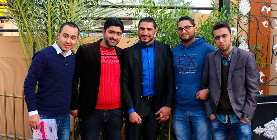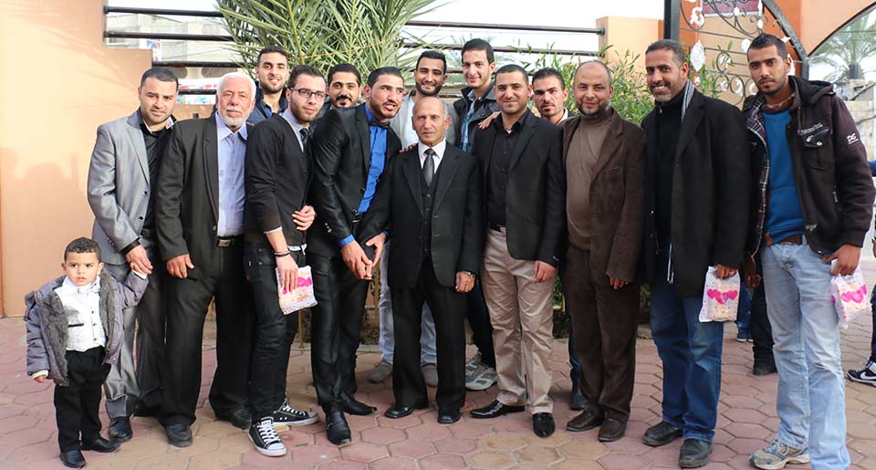 العريس زملاء العروس أ. حمزة عطاالله ، أ. أحمد أبو جراد ، أ. حسان أبو صفر، أ. رمضان أبو ربيع