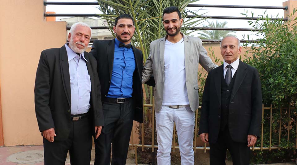 أ. طعمة عبداللطيف عواد(والد لعريس)، عمر مدحت العبادلة (صديق العريس)، أ. محمود (العريس)، أ. فؤاد إبراهيم خالد العبادلة( والد العروس)