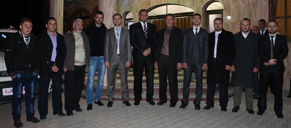 محمد عادل الأغا، مأمون الأغا(عديل العريس)، أ. تامر عادل الأغا، أ. فضل الأغا، والد العروس، العريس، والد العروس، م. صلاح حسين الأغا، أ. سمير طياب الأغا،.، جد العروس