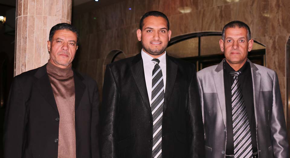 السيد ماهر عوض عبدالعزيز أبو لطيفة(والد العريس)، العريس، السيد عادل حسن الأغا(والد العروس)
