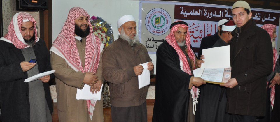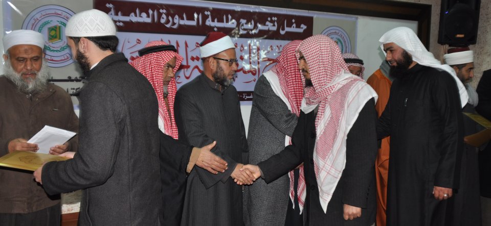 غزة- احتفلت جمعية دار الكتاب والسنة بتخريج 200 طالباً شاركوا في الدورة العلمية (شرح المنظومة الحائية في عقيدة أهل السنة والجماعة)، وذلك خلال احتفال نُظم في القاعة الرئيسة بمدرسة الإمام محمد بن صالح العثيمين، بحضور لفيف من المشايخ والدعاة والمفتين وطلبة العلم الشرعي.