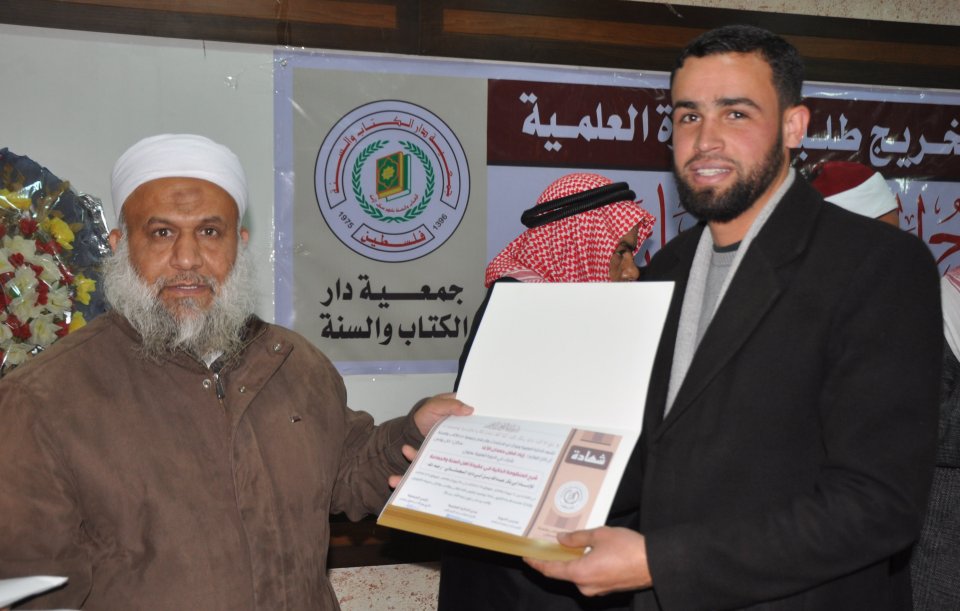 بدوره أوصى الطالب محمد جودة في كلمة الطلبة المحتفى بهم، زملائه الطلبة على الاستقامة والتزود بتقوى الله عز وجل، وطلب العلم الشرعي، كونه سبيل وطريق النجاة في هذا الزمن الذي كثرت فيه الفتن.