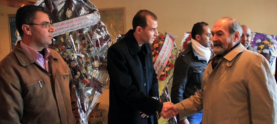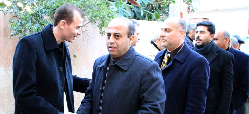 مصور ضياء خالد الأغا، د. زكريا، د. أحمد الشيبي محافظ خان يونسأ. بيان سليم، توفيق جبارة