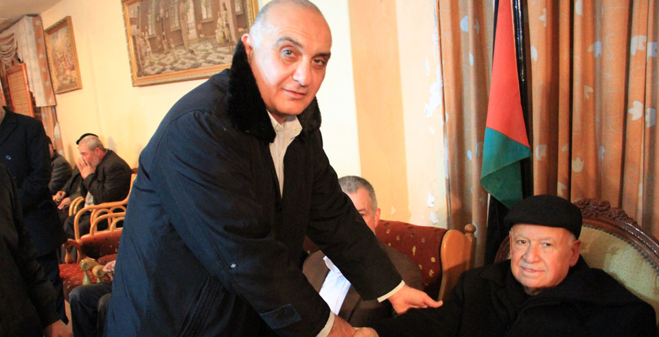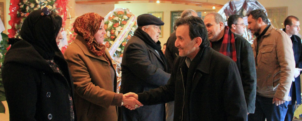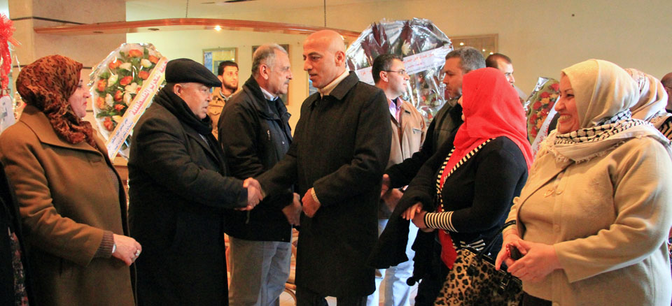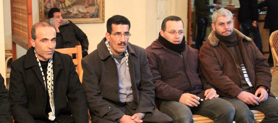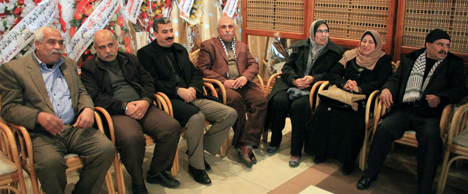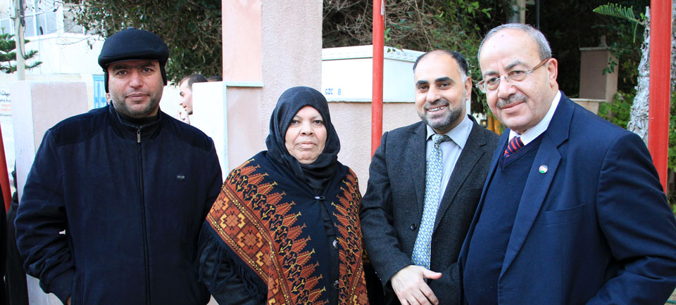 د. فيصل أبو شهلا، د. فايز أبو عيطة، والدة الأسير أم ضياء الأغا، م. سفيان محمد