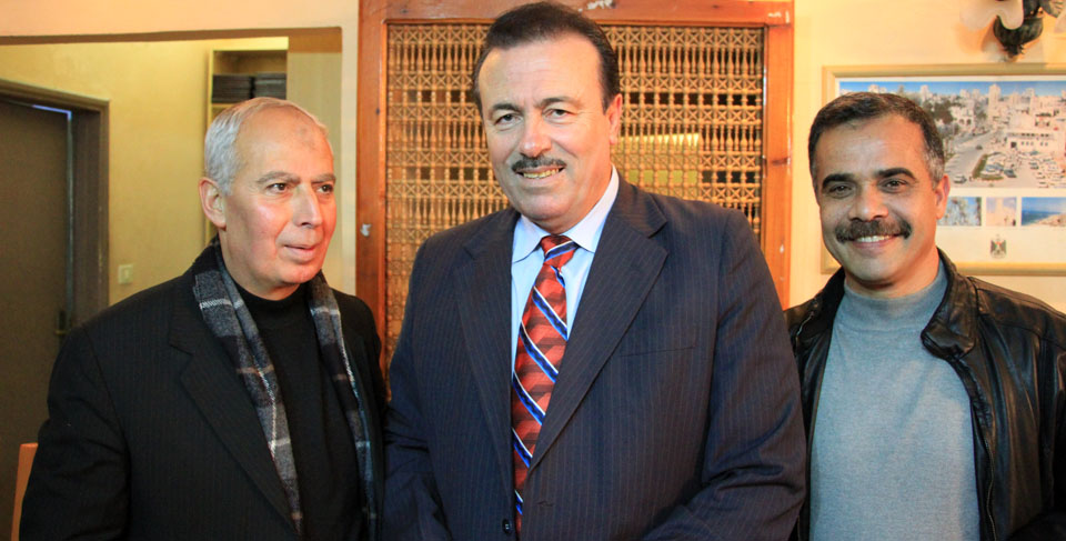م. عبدالله الإفرنجي محافظ غزة، د. زكريا، الوزير م. مفيد الحساينة