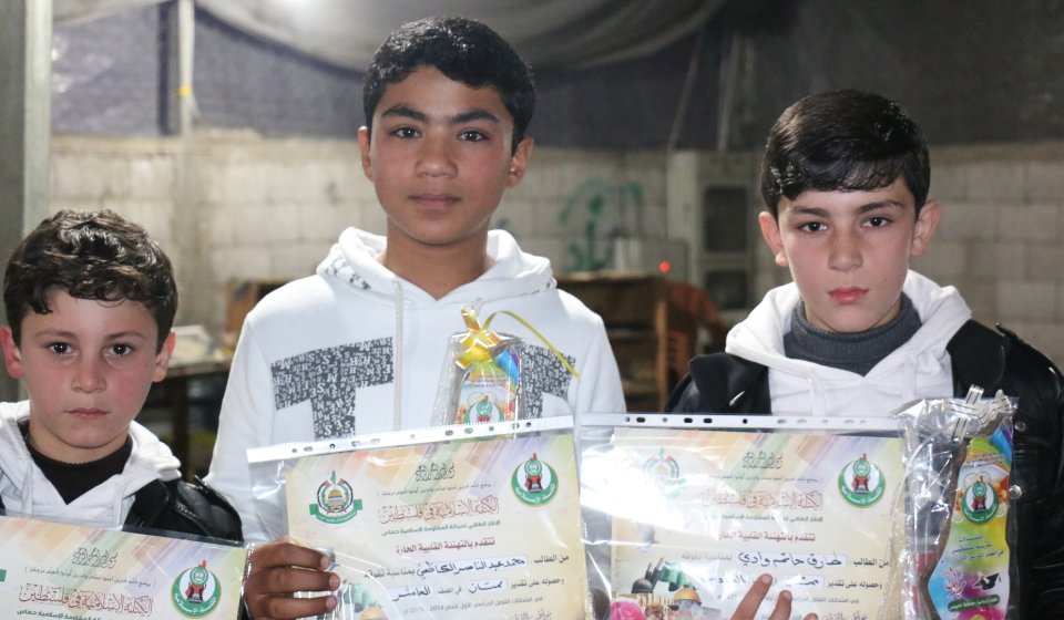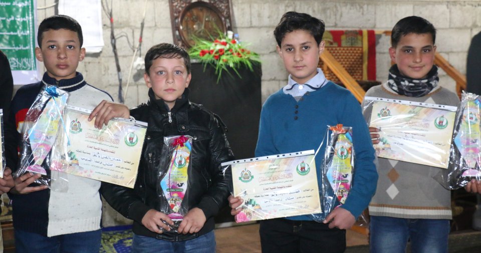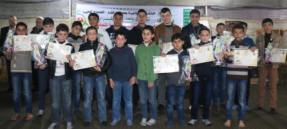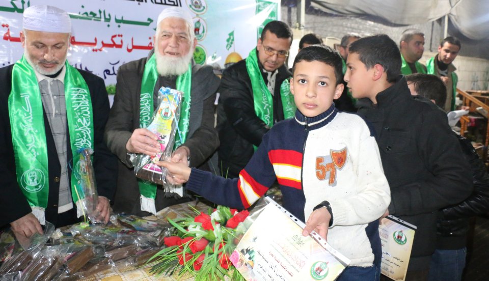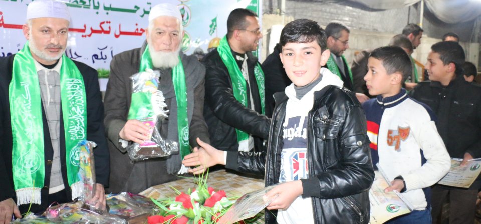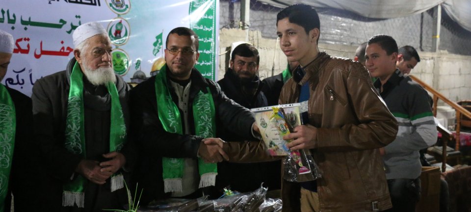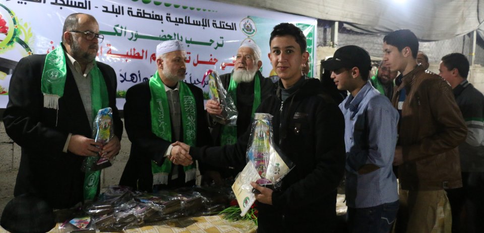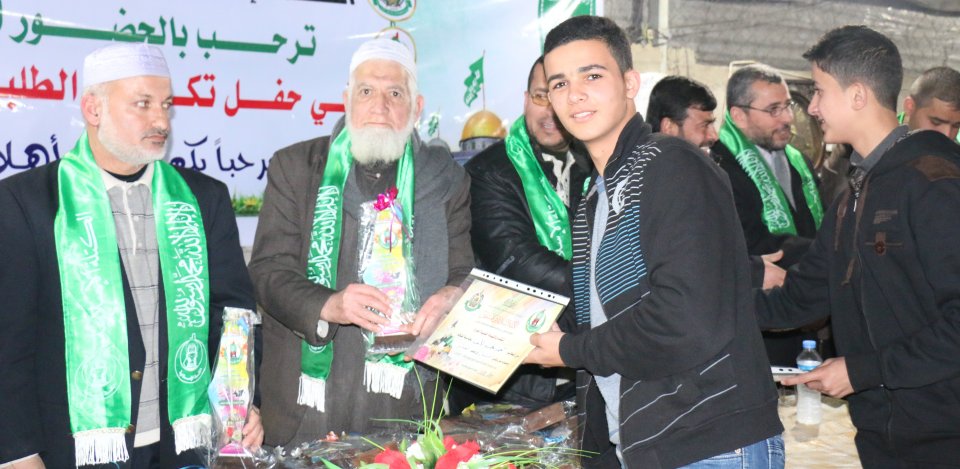 خان يونس- البلد- مصلى المسجد الكبير- الأربعاء الموافق 25-2-2015- الكتلة الإسلامية تكرم الطلبة المتفوقين