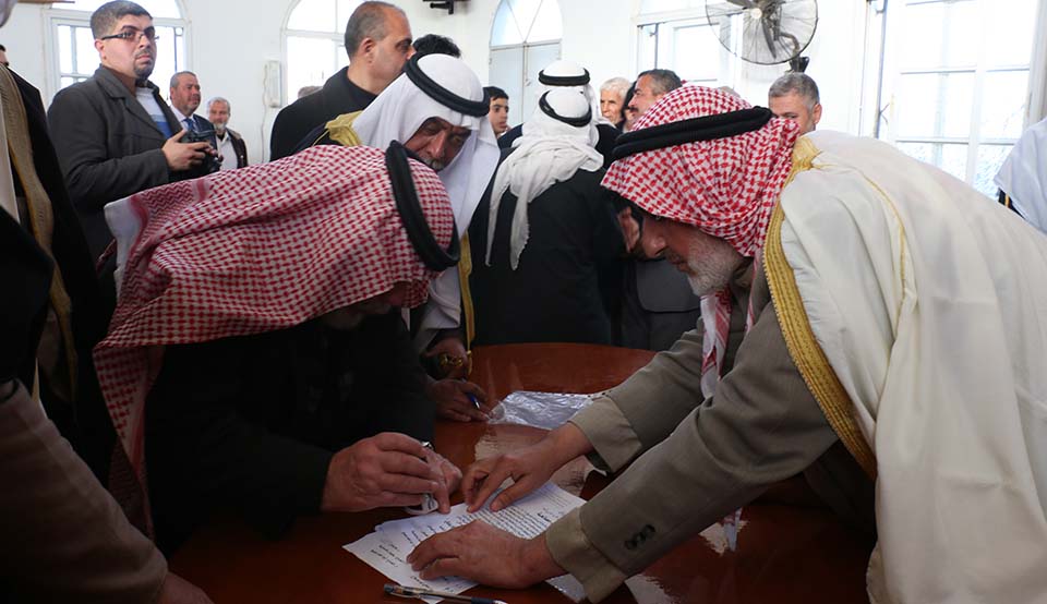 حضر الصلح الذي عقد في مسجد الحاج محمد النجار – قيزان النجار طريق رفح الغربية - بخان يونس عدد كبير من العائلتين ورجال الإصلاح والوجهاء والمخاتير ورؤساء العشائر, وحشد من المواطنين .