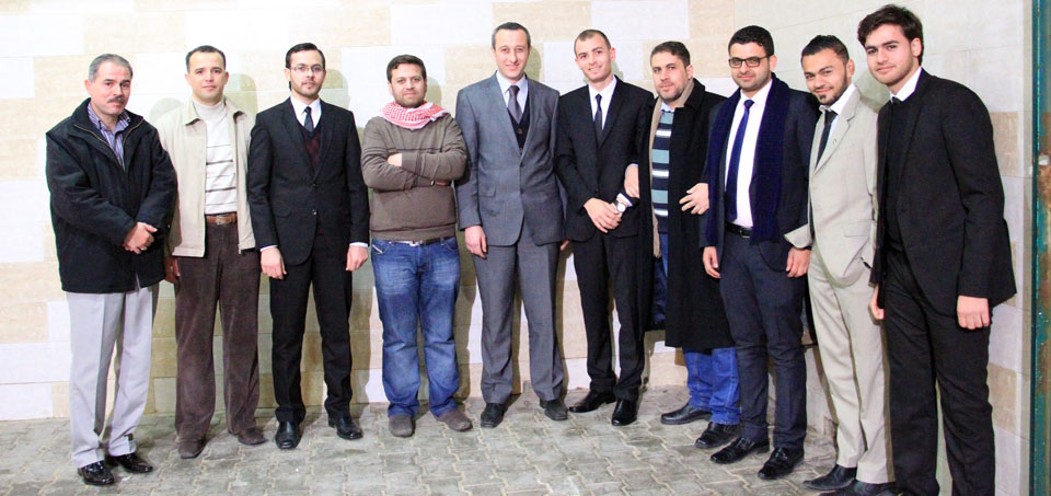 سليمان صلاح الأغا، أ. صالح عبدو الأغا، د. محمد العبادلة، أ. عبدالحميد الأسطل، العريس، أ. يوسف نعيم الأغا،