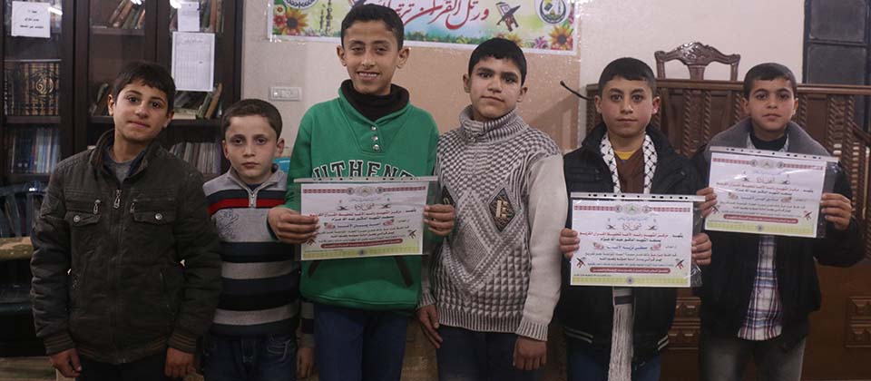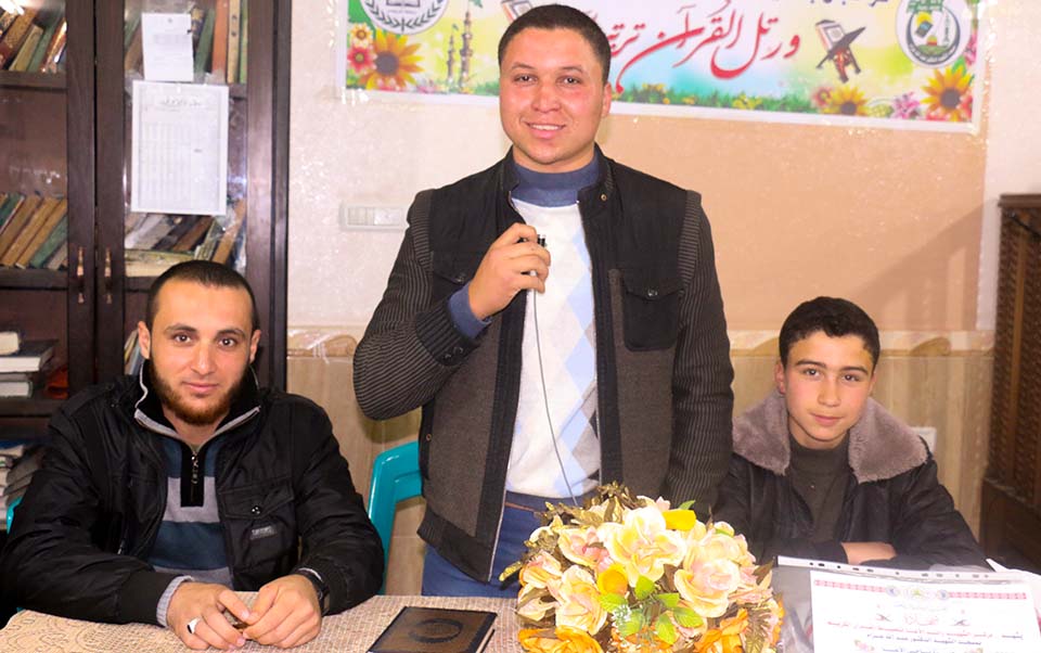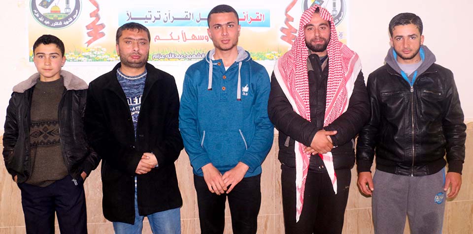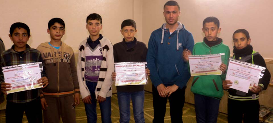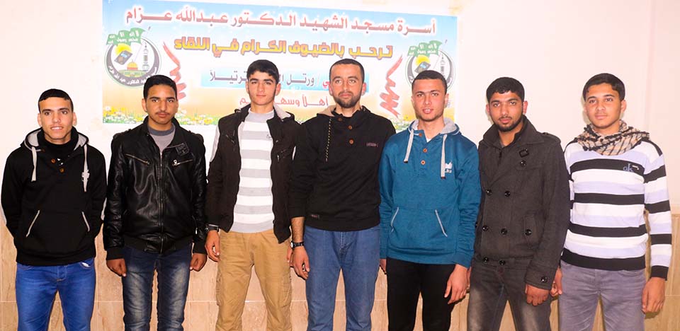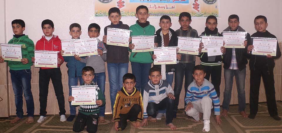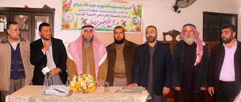خان يونس- السطر الغربي- مسجد عبدالله عزام- الخميس الموافق 5-3-2015-على شرف طلاب مركز الشهيد رائد الأغا لتحفيظ القـرآن الكريم ، قـام المركز بعقـد أمسيـة قرآنيـة بعنـوان ورتل القرآن ترتيلا ، واستضافت الشيخ الفاضل تميم شبير، وبعض القرآء والمنشدين في المحافظة، وقد تخلل الأمسية بعض الفقرات الشيقة، من تلاوات وإبتهالات وأناشيد إسلامية، وتكريم للطلبة الذين أنهوا جزء وجزئين من القرآن الكريم