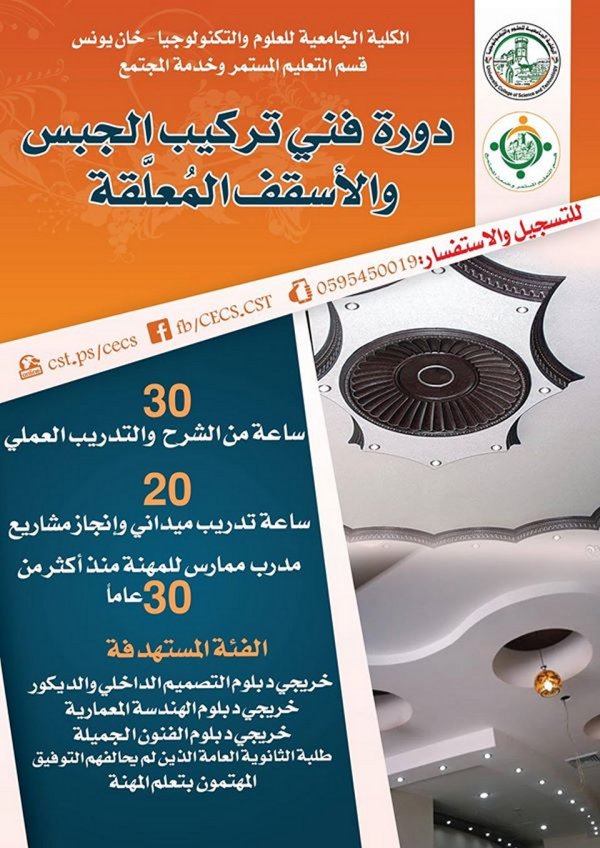 يستعد قسم التعليم المستمر وخدمة المجتمع بالكلية الجامعية للعلوم والتكنولوجيا بخان يونس لافتتاح مجموعة جديدة مميزة من الدورات التدريبية المهنية والمتخصصة.