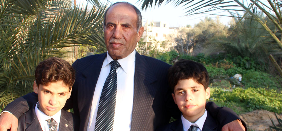 والد العروس يتوسط التوأم سعيد وعمر إياد الأغا