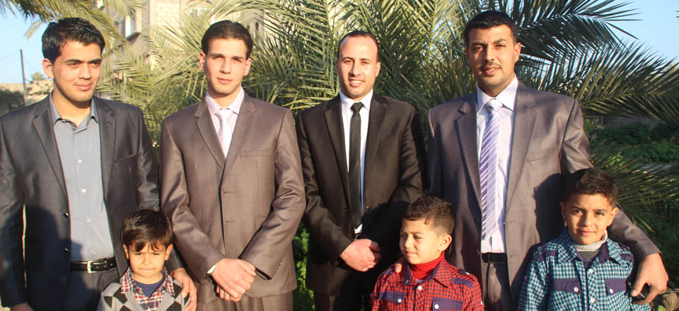 أ. وسام(شقيق العروس)، أ. سامر سعد الأغا، والد العروس، أ. محمد(شقيق العروس)، العريس، أ. سامي طياب الأغا
