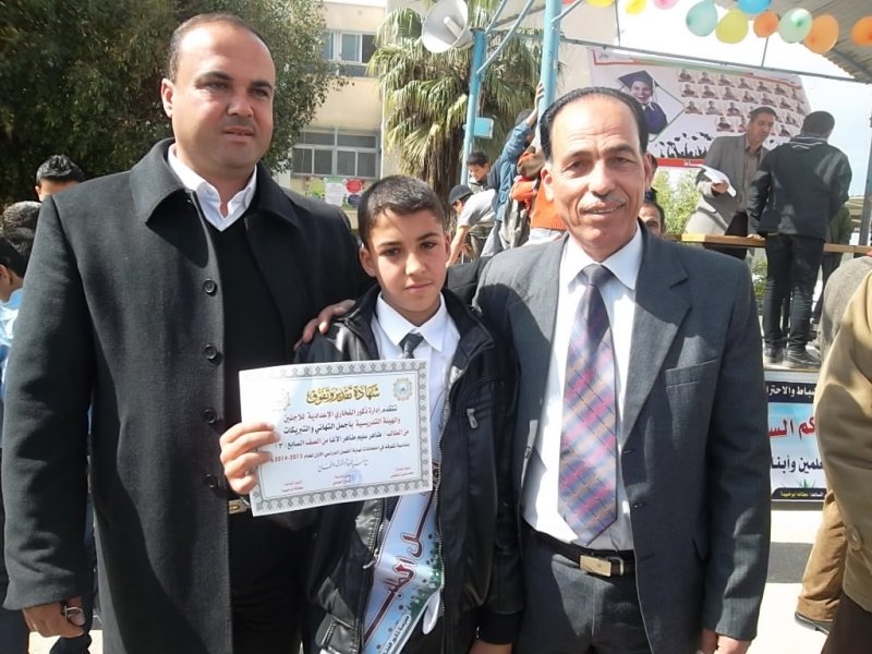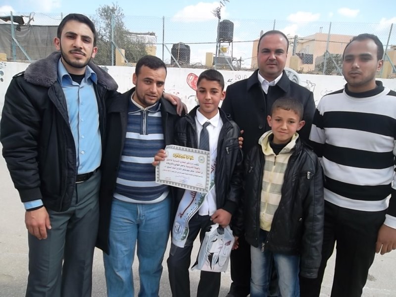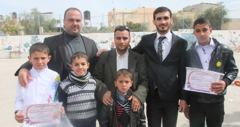 الطالب المتفوق طاهر سليم الأغا، أ. ياسر البريم، أ. محمد حماد، أ. سليم طاهر وانجاله أحمد ومحمد وتامر