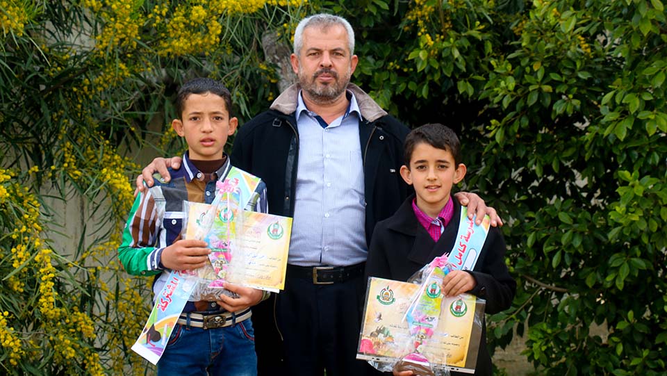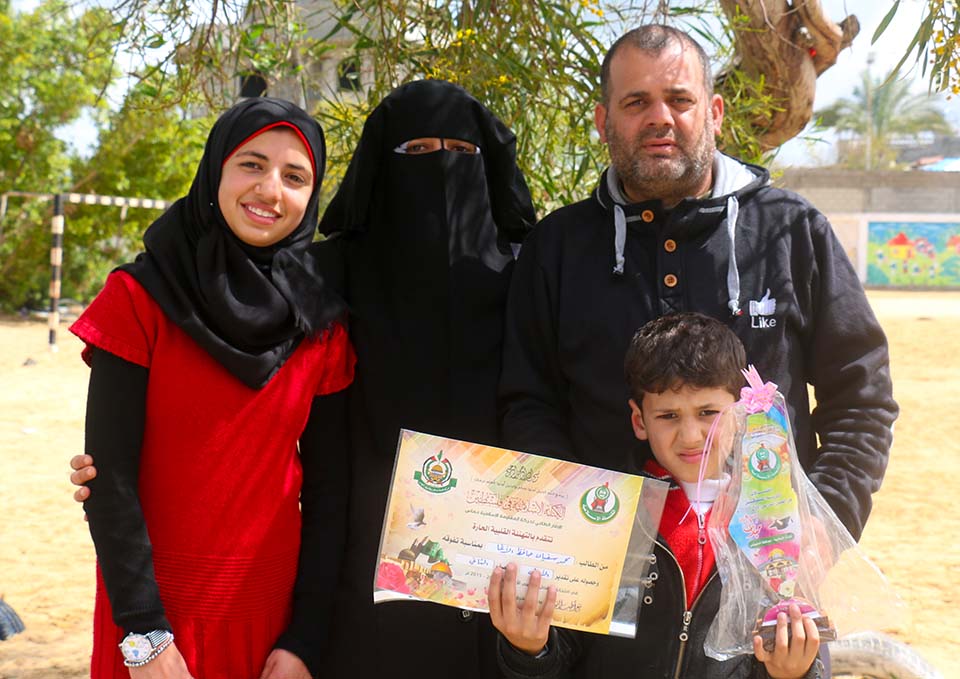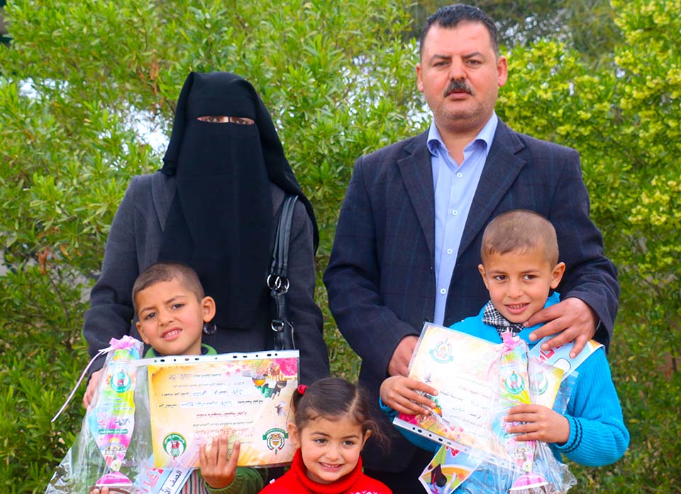 أ. إياد سعيد الاغا وحرمه أ. خديجة تيسير شراب ونجليهما ( سعيد وسراج) والطفلة كريمتهم ندى