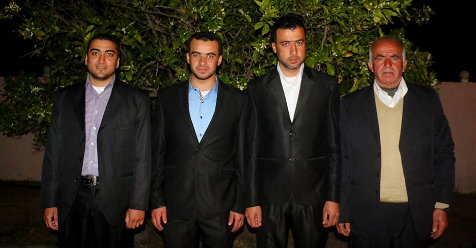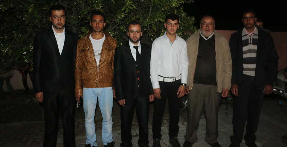 محمود عيد الأغا، والد العريس، كامل نافذ الأغا، العريس، علاء سعيد الأغا، محمد سمير الأغا