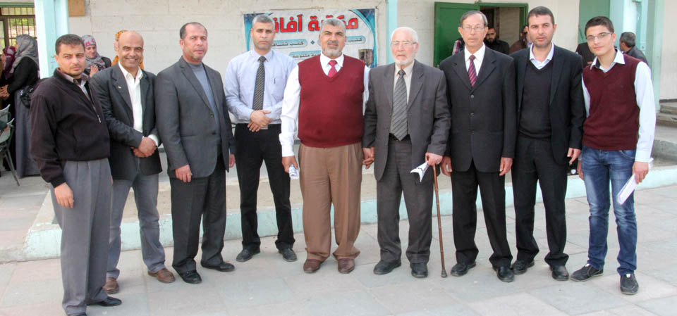 حازم إيهاب الأغا ووالده، أ. غسان عبددالله الأغا، أ. عمر عودة الأغا، أ. على الكاشف، أ. حسين أبو شمالة، أ. عارف أبو ستة