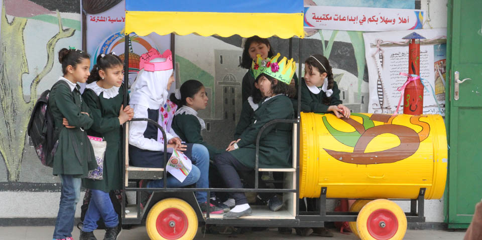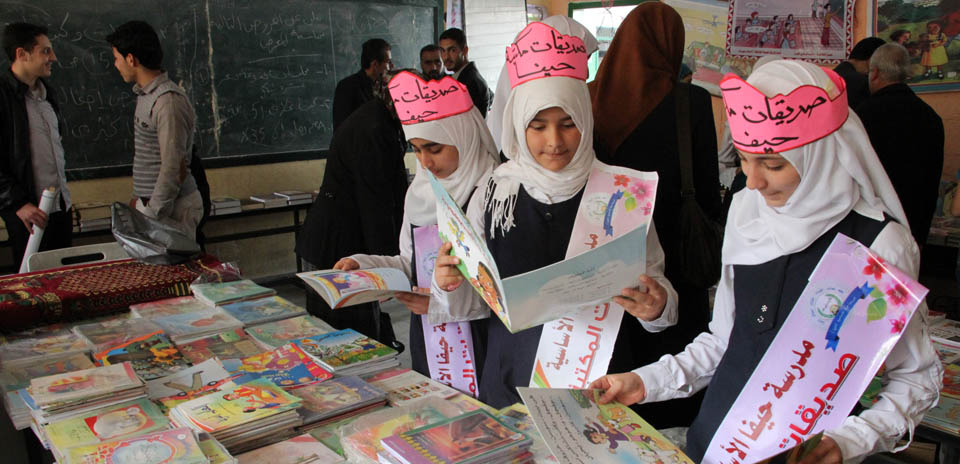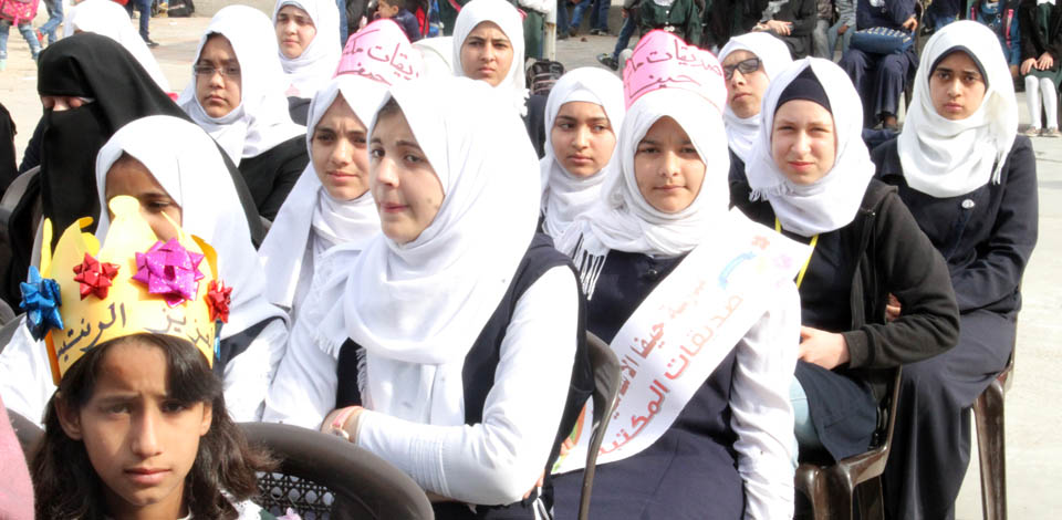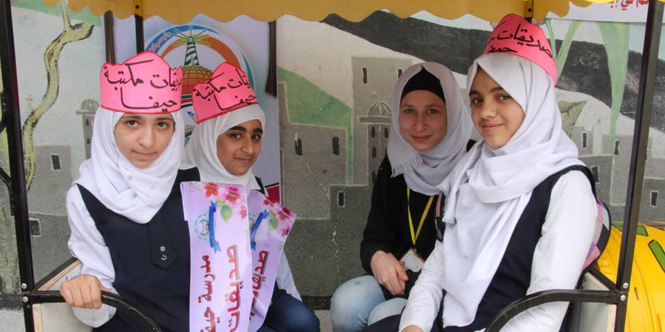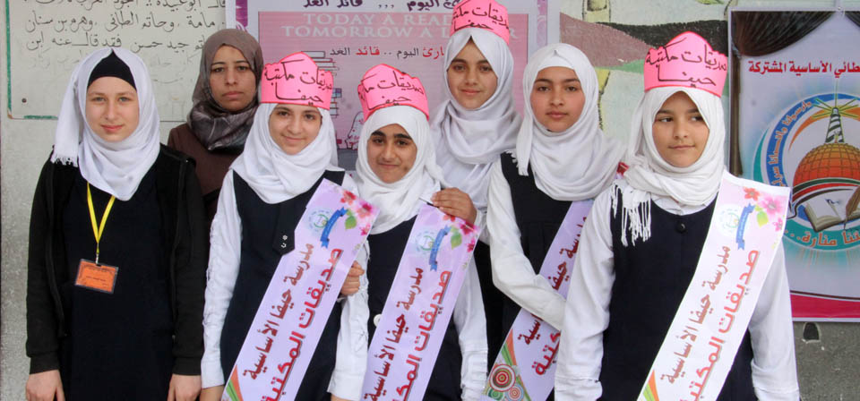 صديقات مكتبة مدرسة حيفا الأساسة ومعلمتهم أ. إيمان محمد الأغا