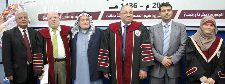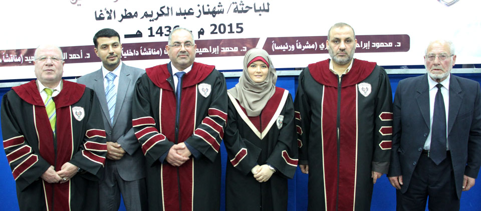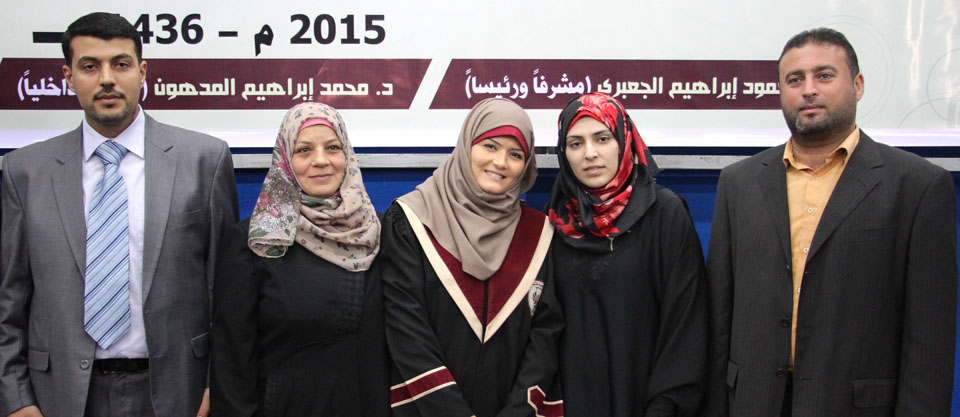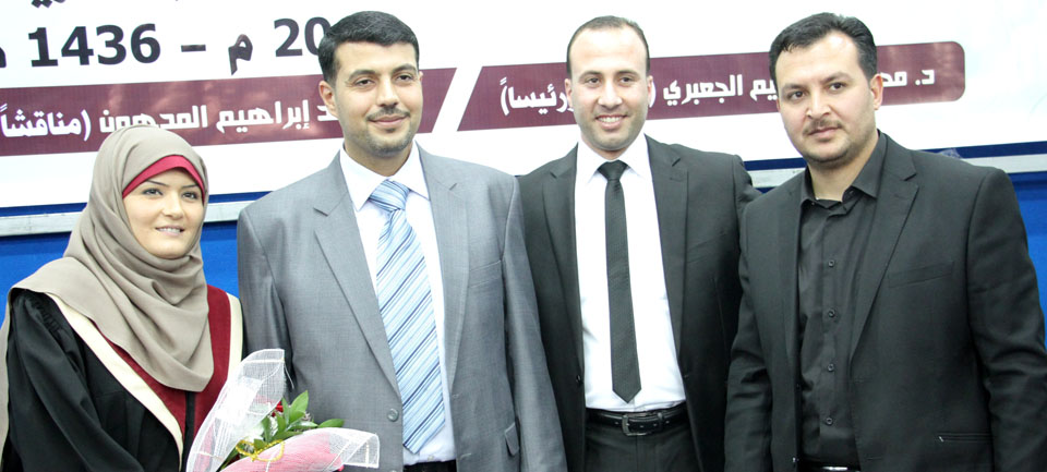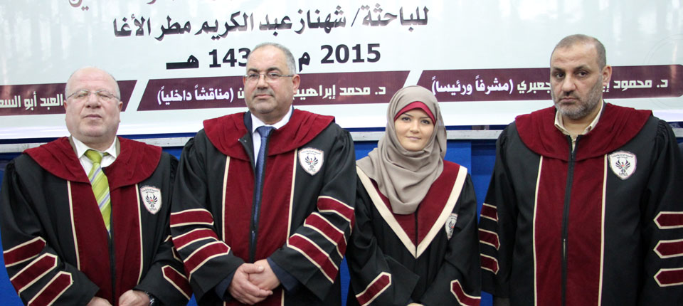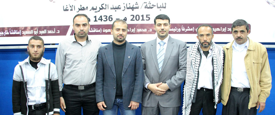 أ. عمر عودة الأغا، د. محمد إبراهيم المدهون، الباحثة، د. محمود إبراهيم الجعبري،